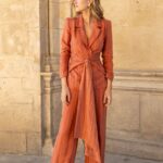 Este traje es de lo más especial, tanto el tejido como la forma… ¡lo tiene todo! El tencel con el toque sutil de brillo matizado lo hace perfecto para cualquier ocasión especial. La chaqueta tiene un fajín ajustable en la cintura, creando una prenda perfecta para todo tipo de cuerpos.